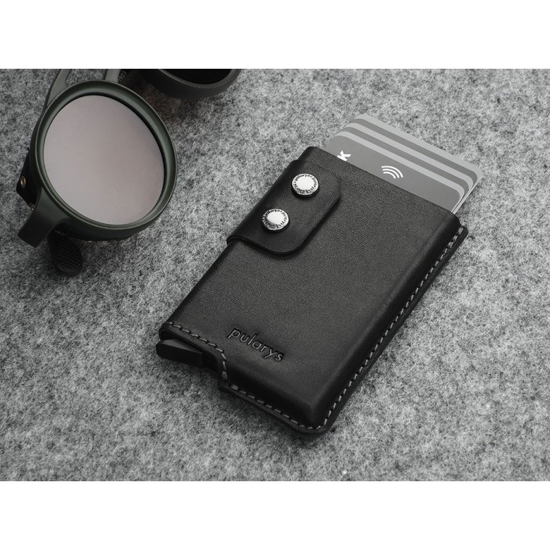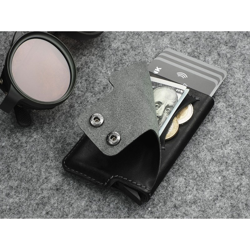Made from vegetable-tanned Nomad leather. Amazingly capacious - will store many cards and documents, providing easy access to them, thanks to a special gradual ejection mechanism. An additional note pocket, a coin pocket and a flap with two snap fasteners will help you organise your contents, plus it just looks great! Thanks to the RFID technology used in the wallet design, your sensitive data and credit card funds are completely safe and protected against unauthorised reading or theft. Registered design, unique on the market.