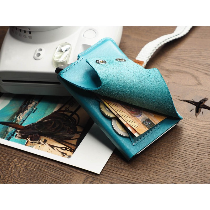 Made from vegetable-tanned Nomad leather. Amazingly capacious - will store many cards and documents, providing easy access to them, thanks to a special gradual ejection mechanism. An additional note pocket, a coin pocket and a flap with two snap fasteners will help you organise your contents, plus it just looks great! Thanks to the RFID technology used in the wallet design, your sensitive data and credit card funds are completely safe and protected against unauthorised reading or theft. Registered design, unique on the market.