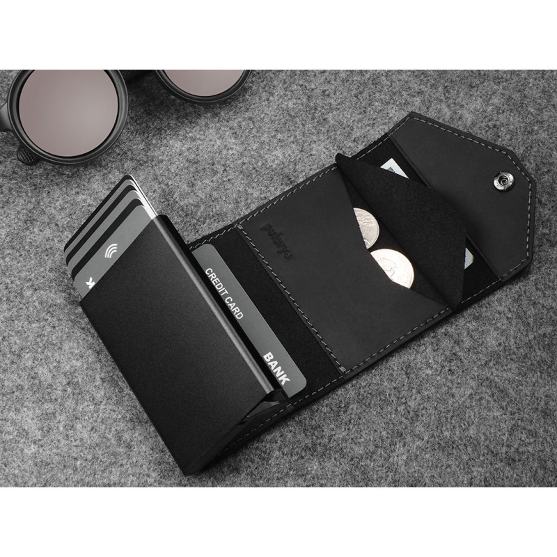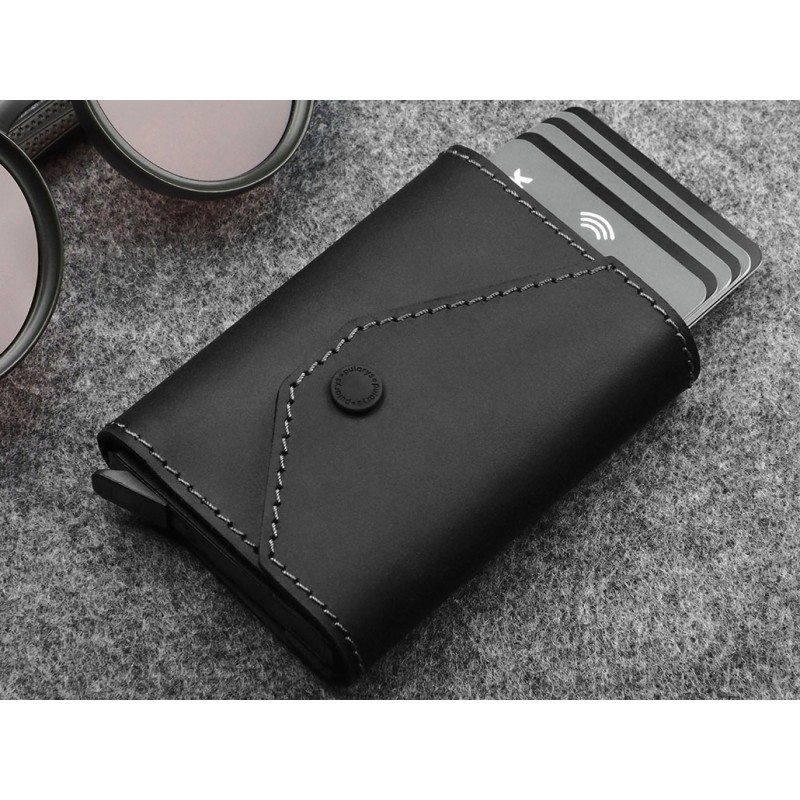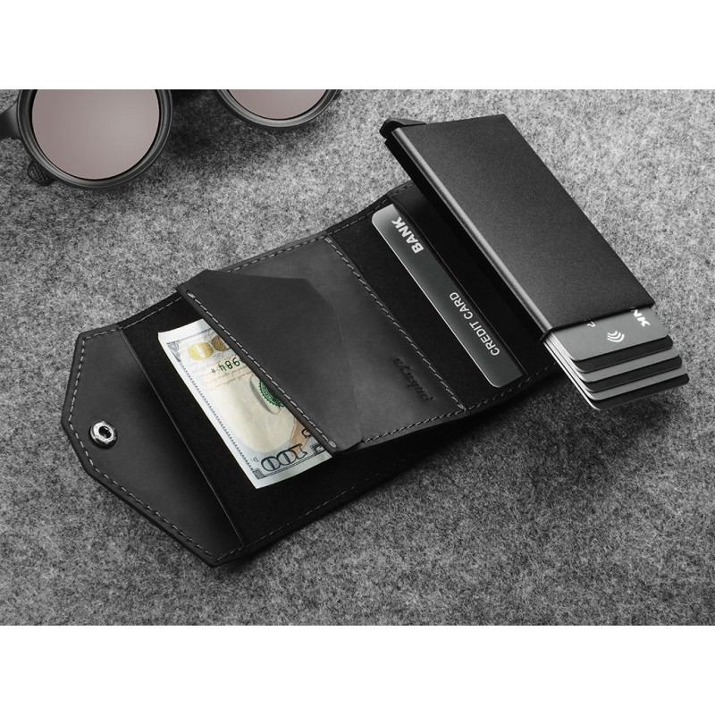 Amazingly capacious - will store many payment cards and documents. The special gradual ejection mechanism ensures quick and easy access to the cards. The elegant functionality of this wallet also includes an additional note pocket and a coin pocket. Thanks to the RFID technology used in its design, your sensitive data and credit card funds are completely safe and protected against unauthorised scanning or theft.