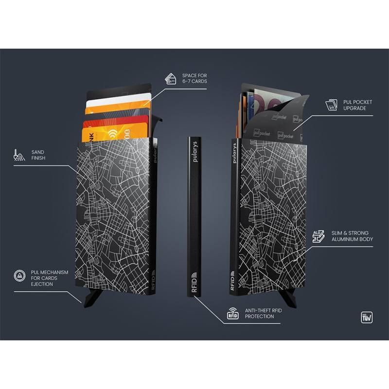 Made of brushed aluminium. A gradual card ejection mechanism provides quick and easy access to the contents of the case. RFID technology provides complete protection for your payment cards and documents. Anywhere, anytime, you can rest assured - sensitive personal data and cash are protected against theft or unauthorised scanning. Thanks to its slim silhouette and compact size, it will fit anywhere - in the smallest handbag, pocket or standard wallet. It will always be with you!