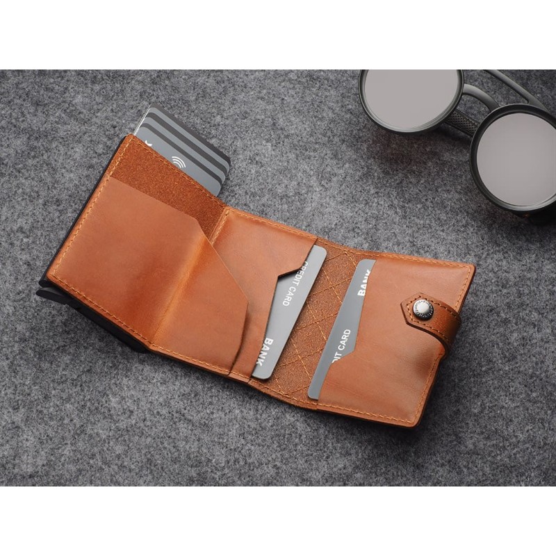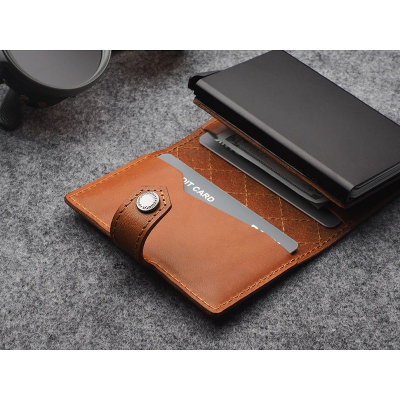 Keep your cards and notes close at hand, organised in two easily accessible pockets. An elastic band for notes and more is an added convenience. Thanks to the RFID technology used in the wallet design, your sensitive data and credit card funds are completely safe and protected from unauthorised reading or theft. The special gradual card ejection mechanism allows you to quickly reach for the one you are looking for. Registered design - unique and original!