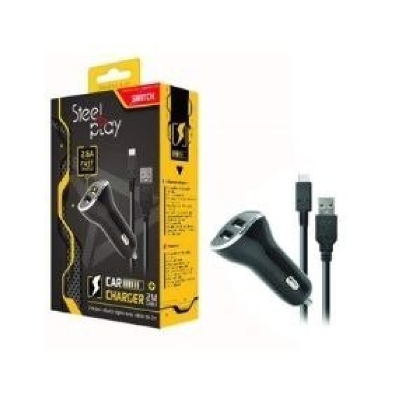 STEELPLAY - CAR CHARGER WITH 2 USB PORTS + 2M CHARGE CABLE (SWITCH)